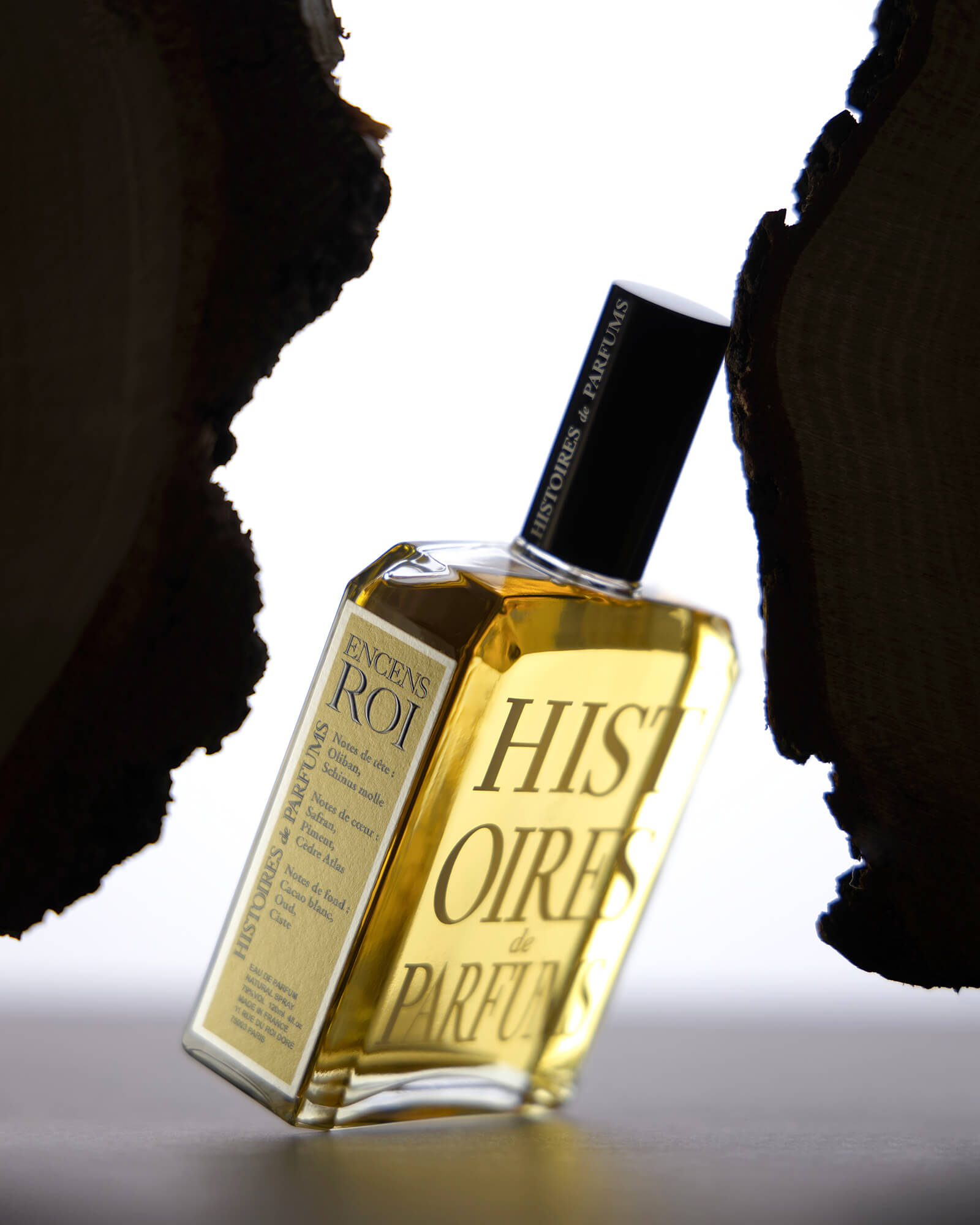 Under fruity and herbaceous rays of Roman Chamomile, the mineral and zesty sparkle of Olibanum CO2 meets the woody and almost salty freshness of Schinus Molle, together evoking the crackling bark of Incense Trees and their resin, passively exuding their resinous effluvia in scorching desert winds. Drawn by an uplifting yet carnal Atlas Cedarwood, Saffron unfolds the richness of its leather and tobacco undertones, its sheen and its temper, Turkey-red splatters lit up by spicy embers of Pimento Berry. Olibanum and Saffron, the divine and the profane, the Abrahamic and the Babylonian, each enriching their song, one with the mystical, ecstatic, mystagogic darkness of Oud and the balsamic warmth of Cistus; the other with decadent and overdosed accents of White Cacao and Vanilla, regressive, impious and gourmand. Interlaced billows of sweet and cold smokes; a path of pleasure and a path of enlightenment; the resin of gods and of princes: Encens Roi collects the tales of a Humanity that has never ceased to hope.